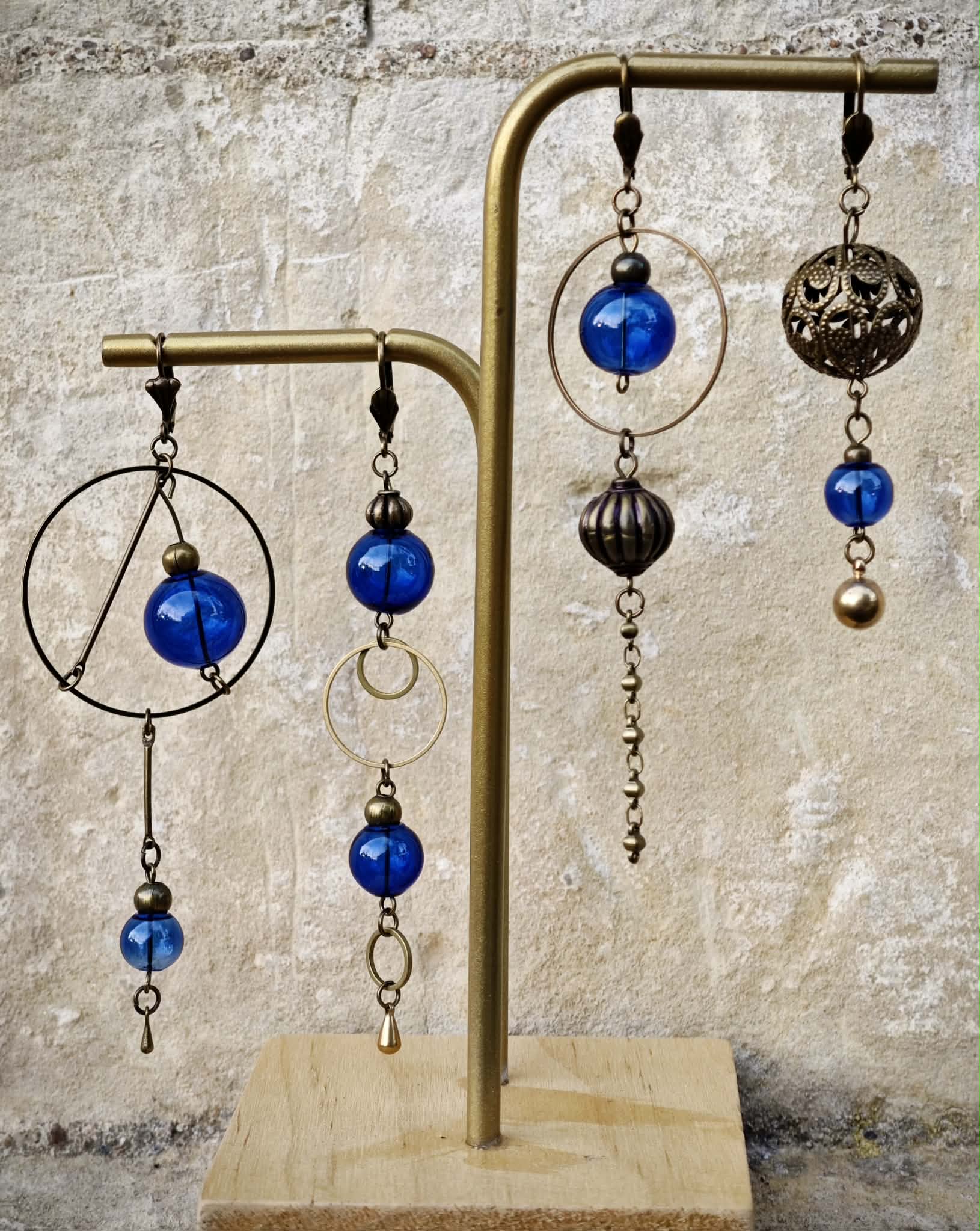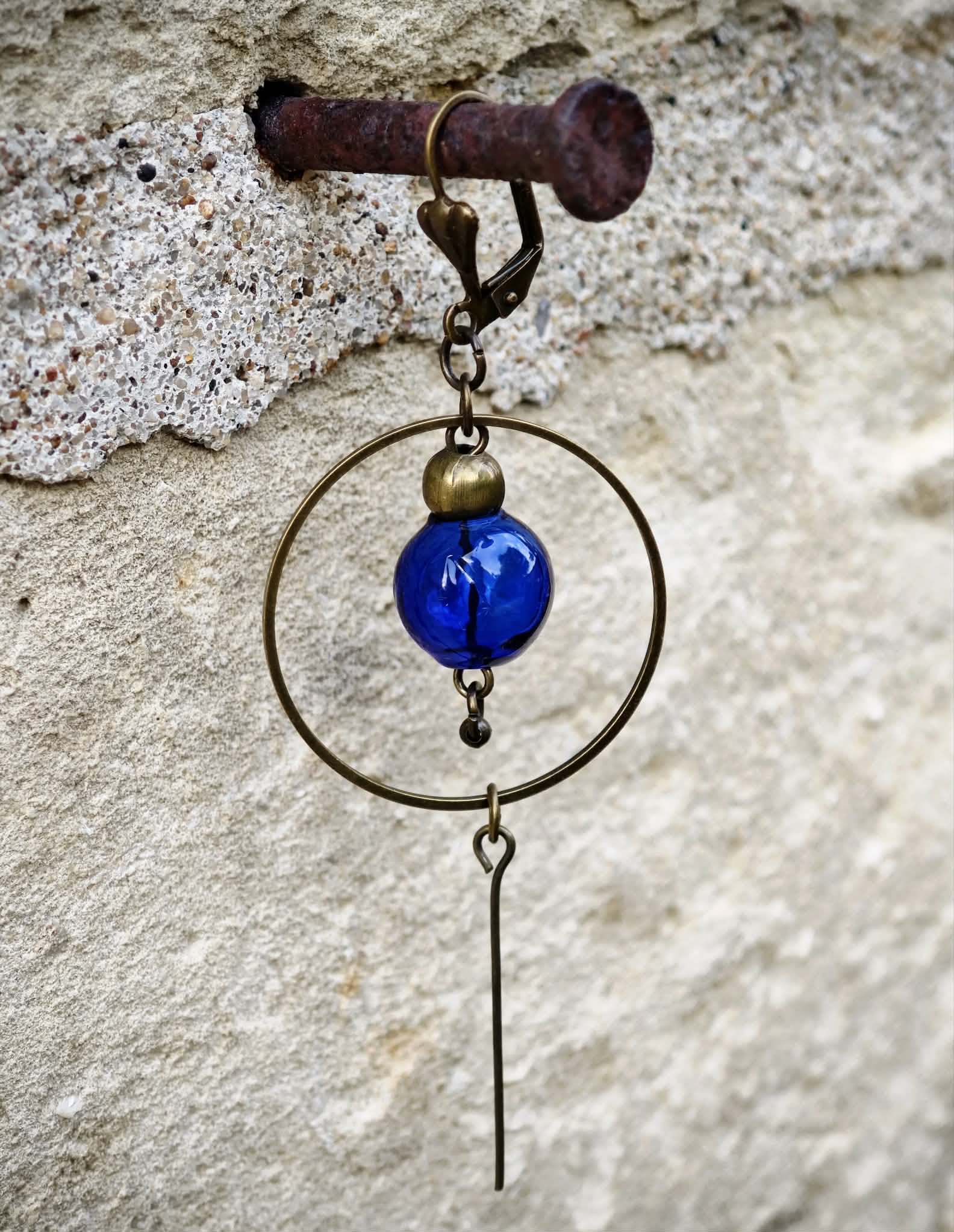 Boucles d’oreilles en verre soufflé et laiton.